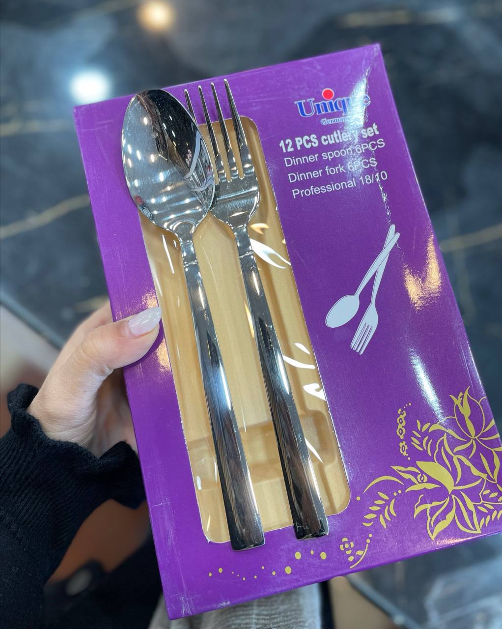 قاشق چنگال Unique💥استیل با کیفیت ،ضد زنگ آهن ربا نگیر ،ضخامت 3/5میل قاشق6عدد،چنگال6عدد