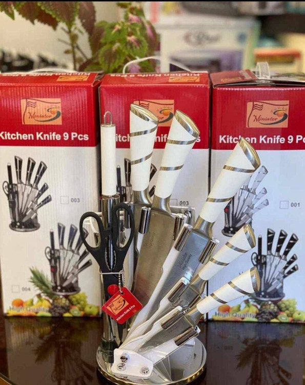 📌کارد و ساطور ۹ پارچه استیل پایه گردان