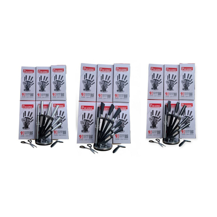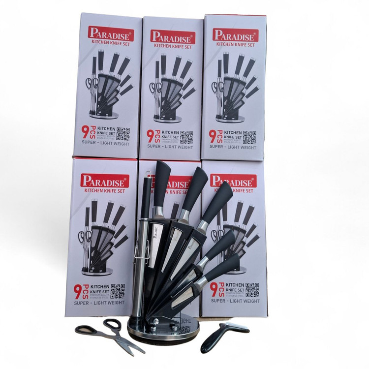 📌کارد و ساطور ۹ پارچه استیل پایه گردان